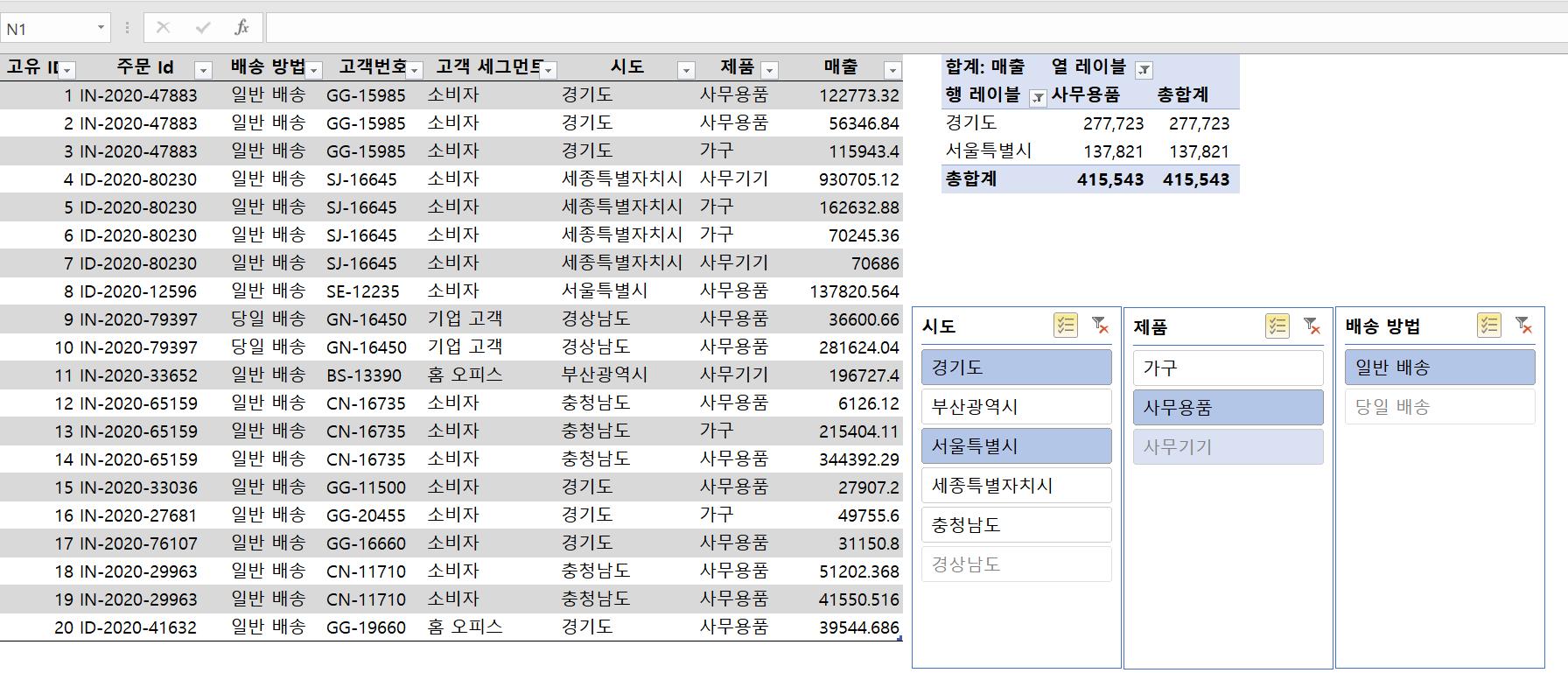 - 함께 관리하면 피벗 테이블 사용이 어려워진다.