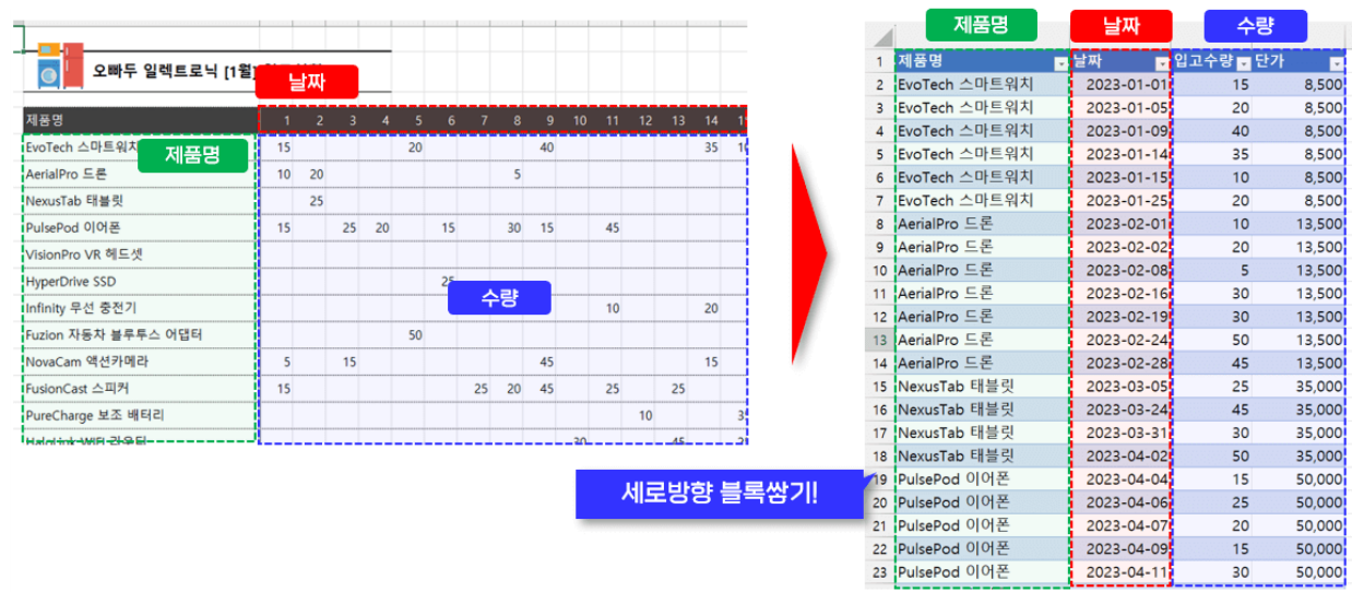 원본 데이터에는 셀 병합을 절대 사용하지 않습니다.