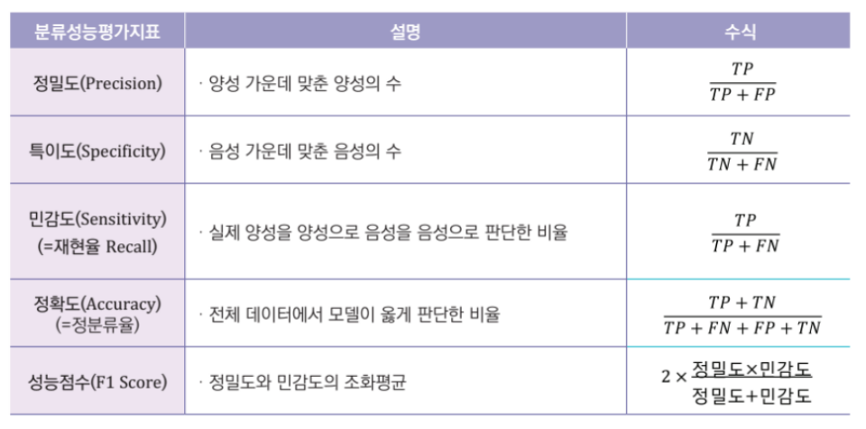 > 실제 양성 클래스 중에서 모델이 양성으로 예측한 것의 비율을 측정.