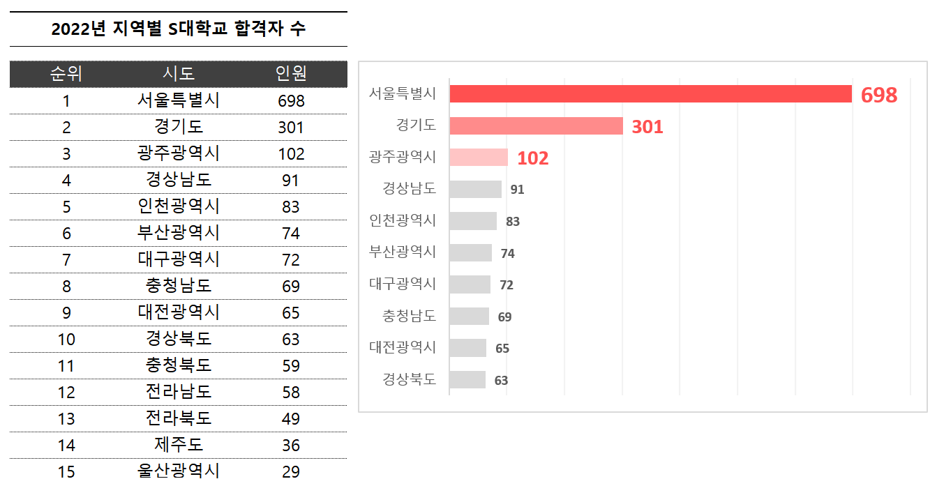 가로 막대형 차트 : 항목의 개수가 많을 경우