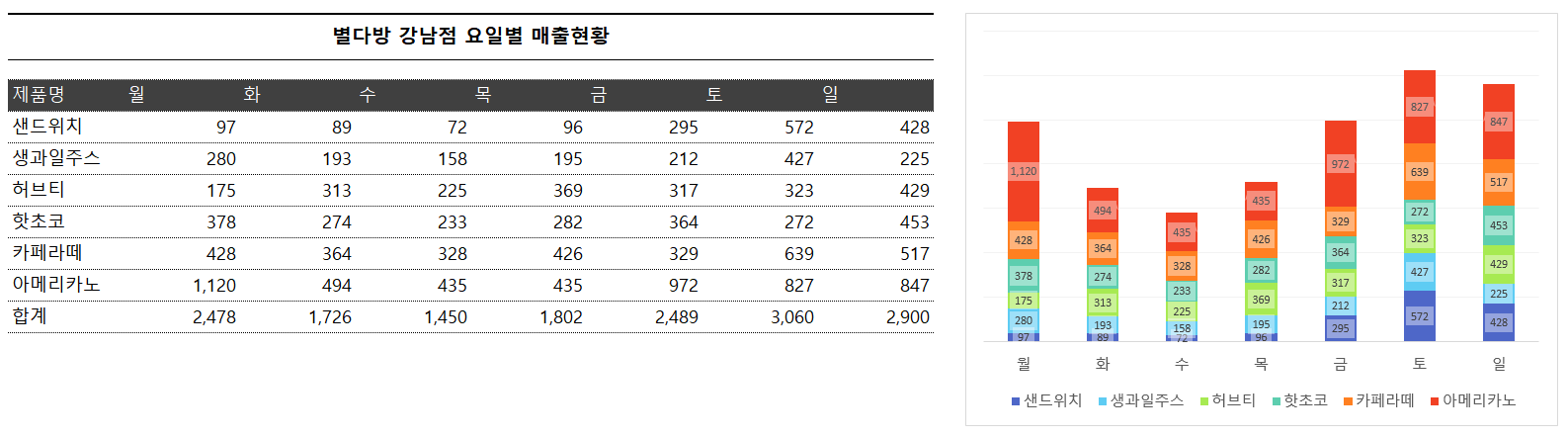 누적 세로 막대형 차트 : 특정 항목의 변화 트렌드 강조