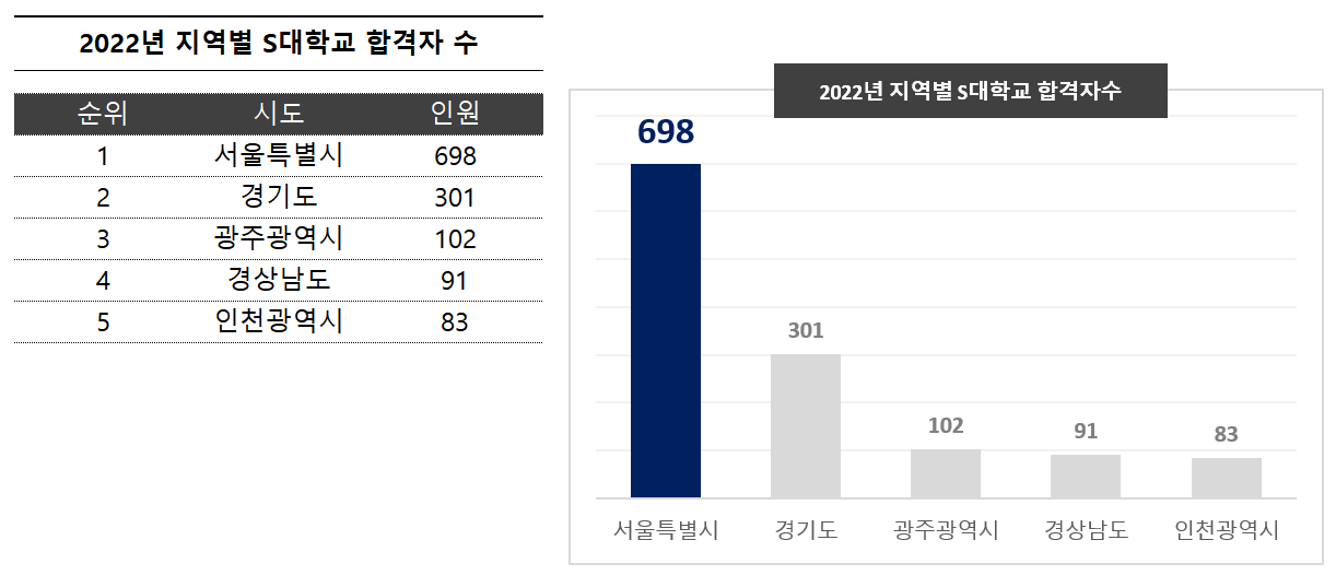세로 막대형 차트 : 항목별 값의 차이 파악