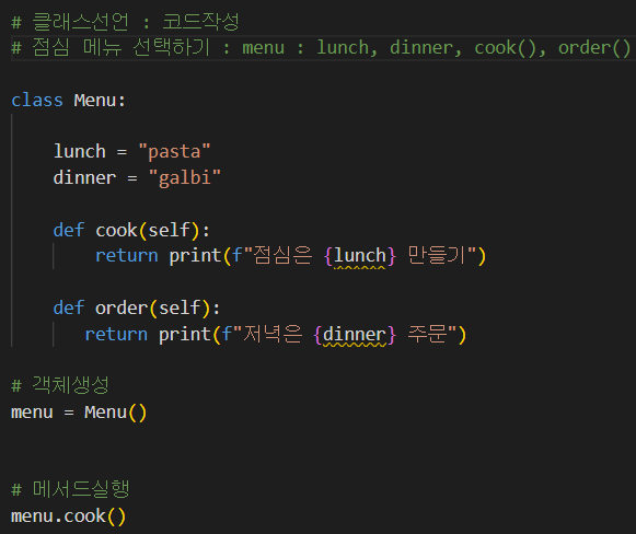 : 변수, 함수를 묶어서 코드를 작성하는 방법.
