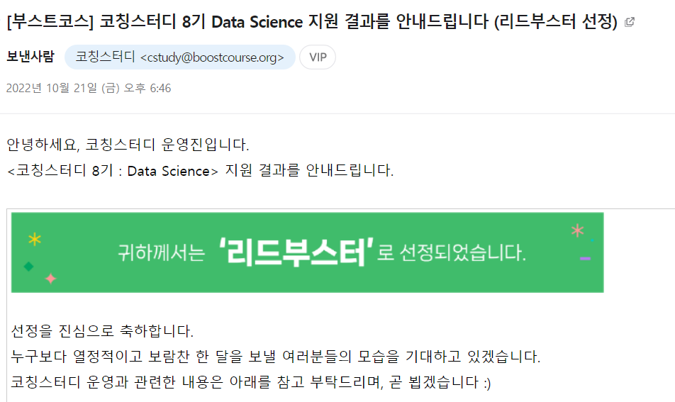 언젠가 지원했던 네이버 모두의 연구소, 부스트코스 코칭스터디에 선정 되었다.