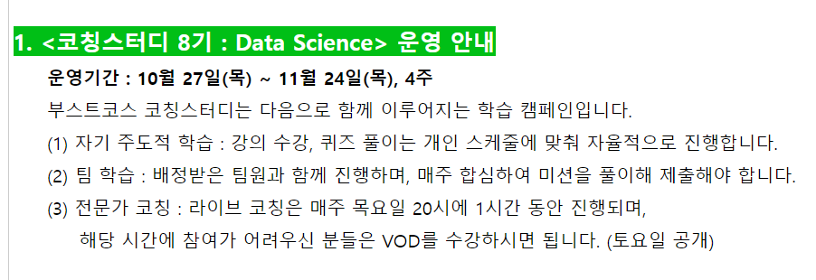 사전 강의(부스트코스 제공)를 코칭스터디 시작 이전 모두 수강 후