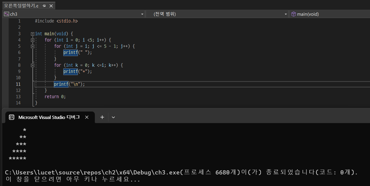 3.4.3 실습 3: 오른쪽 정렬로 별표 출력하기