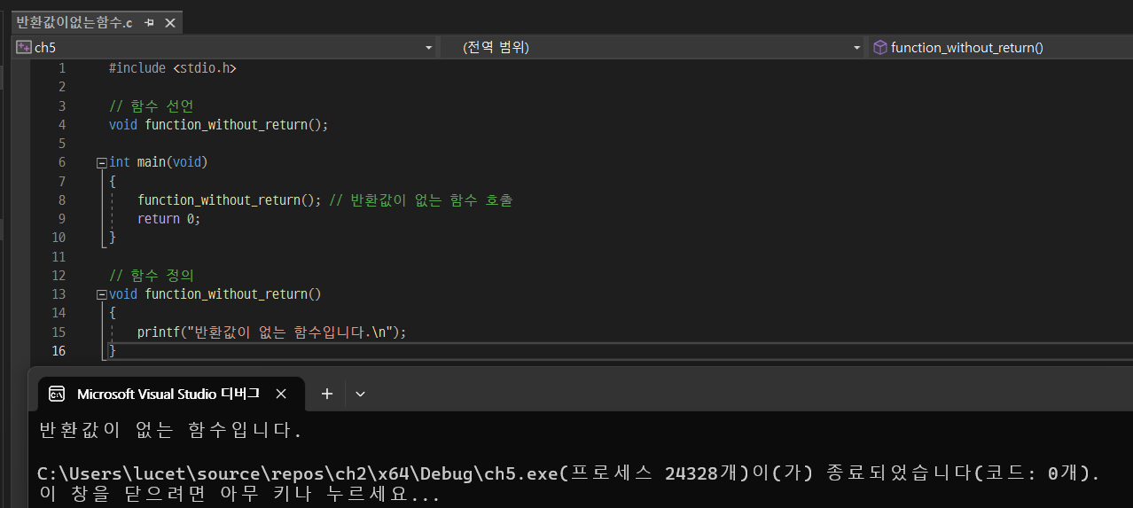 ▷ 함수 선언과 함수 정의는 반환형, 함수명, 매개변수의 종류와 개수를 동일하게 적어야 하지만, 매개변수 이름은 다르게 적어도 된다.