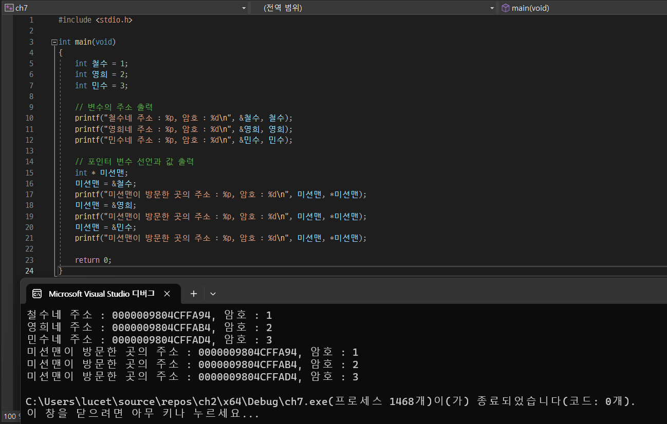 7.2.2 포인터로 다른 변수의 주소와 값 알아내기