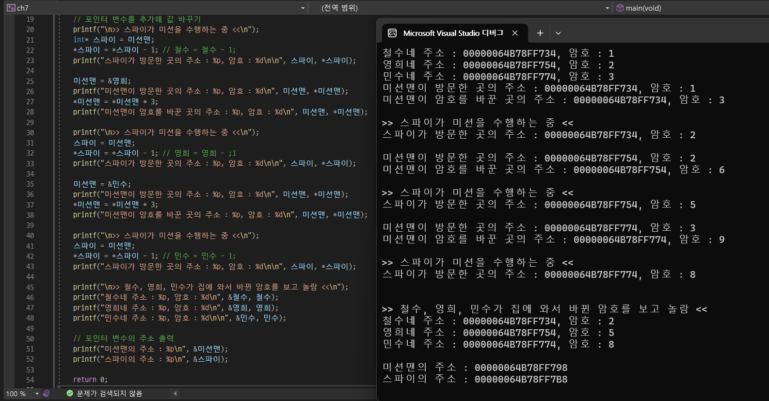7.3.2 실습 1: 포인터로 두 변수의 값 교환하기