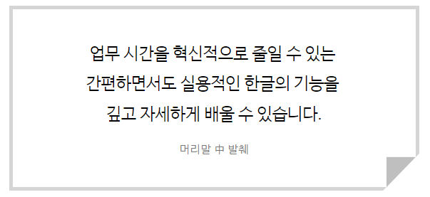 한글 문서 작성의 효율성, 생산성을 높이고 싶은이들, 혹은 한글 문서 작성이 낯선 이들에게