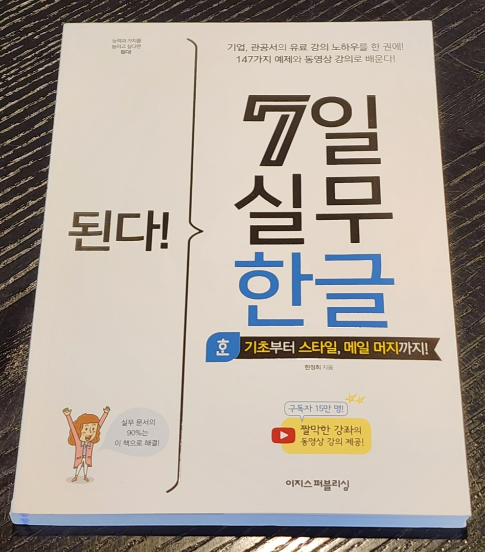 한글 문서 작성의 노하우가 가득 담긴 이지스퍼블리싱의 신간 '된다! 7일 실무 한글'을 추천해본다.