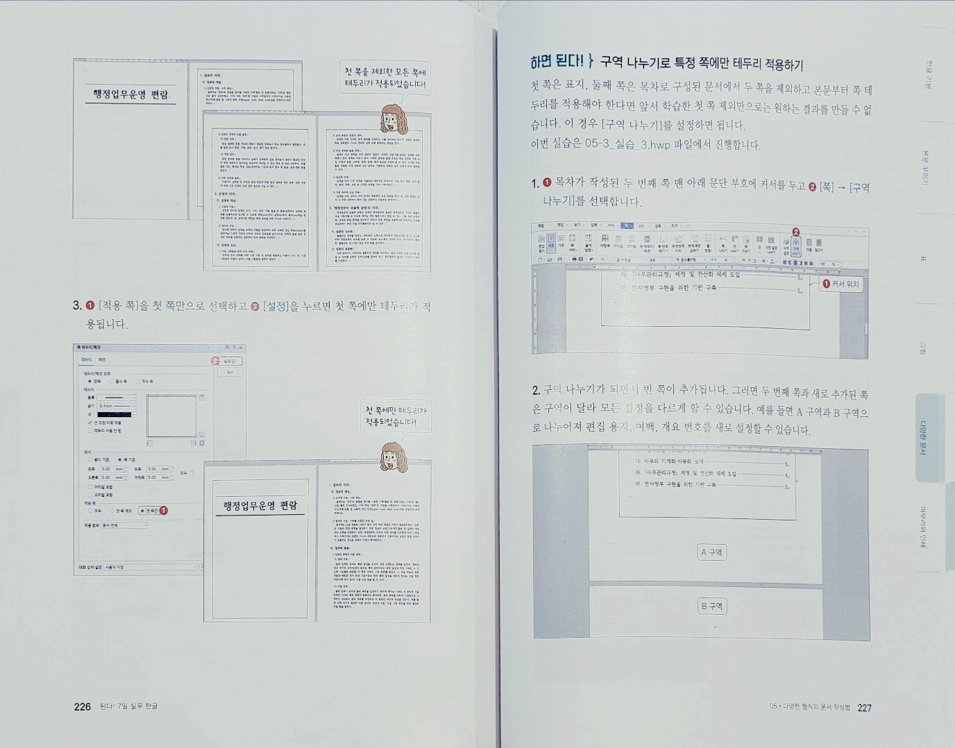 '된다! 7일 실무 한글' 에서도 자세하고 친절하게 설명한다.