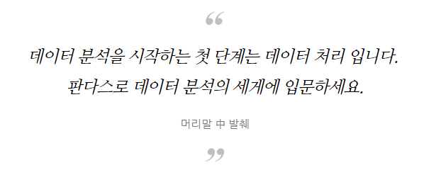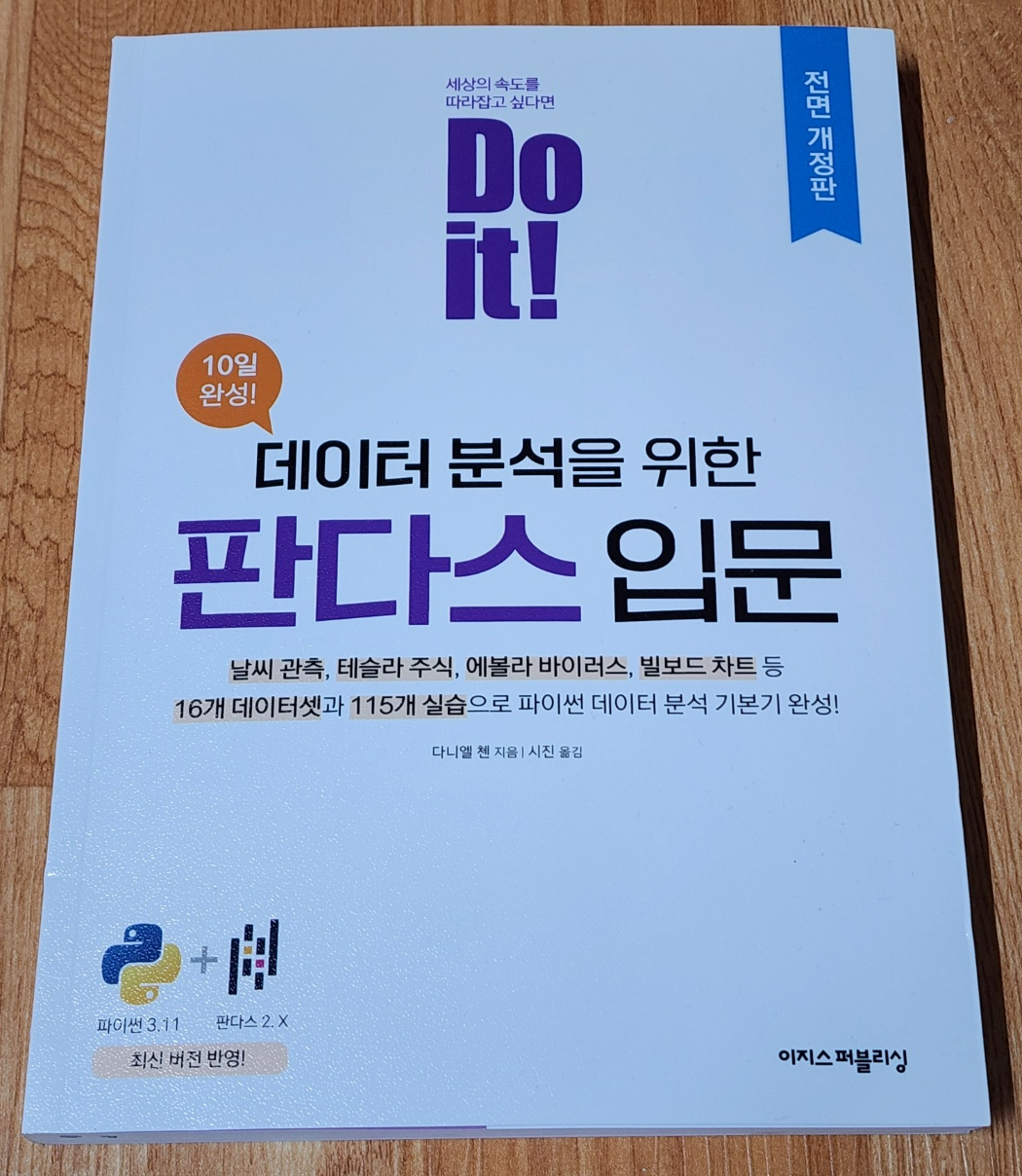 Do it! 데이터 분석을 위한 판다스 입문 이 5년만에 개정판으로 돌아왔다. 판다스(pandas)는 파이썬에서 가장 많이 활용되는 라이브러리 중 하나로, numpy와 sklearn, tenserflow, matplotlob 등의 다양한 데이터 분석에 사용되는 라이브러리를 사용하기 위한 사전 데이터 셋 정제에 주로 사용된다.