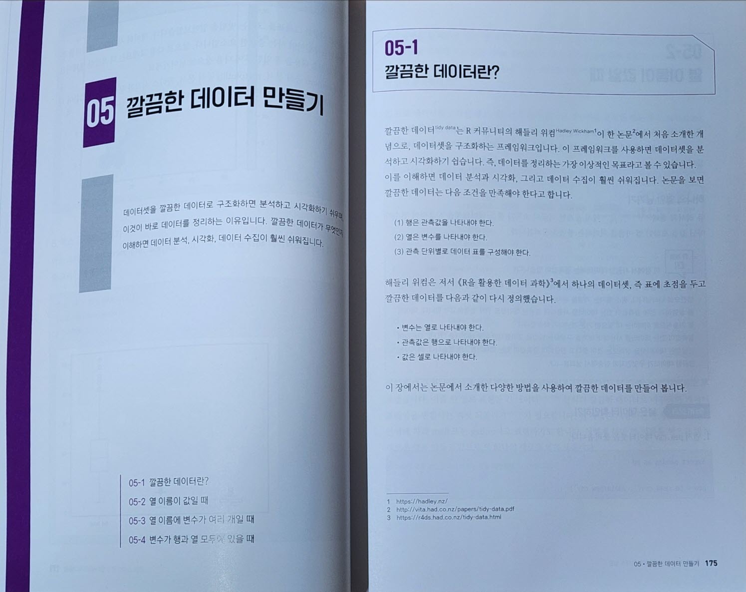또한 현업 데이터 분석가들이 데이터 전처리에서 중요하게 설명하는 'tidy data'에 대해서도 다루고 있어 판다스 라이브러리 학습방향이 '데이터 분석'을 위함임을 명확히 알 수 있었다. 표준화 혹은 정규화 되어있는, 결측치가 없고 이상치가 적은, 컬럼이 명확하고 내부 데이터 셋이 온전한 그러한 이상적인 데이터는 실제로는 존재하기 어려움을 몇 가지 예시를 통해 판다스의 사용법을 안내하는 점이 인상 깊었다.