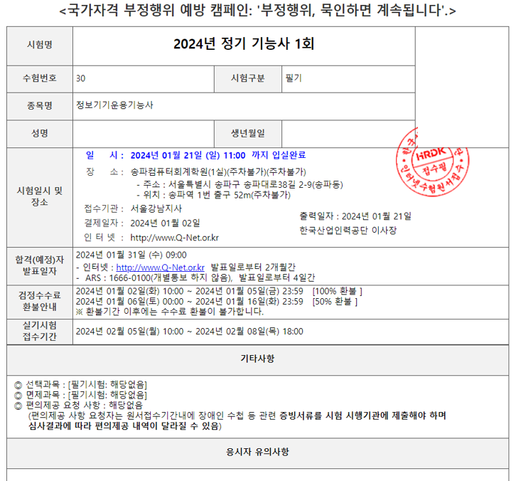 필자의 합격 후기는 1.31일 추가하는 것으로...!