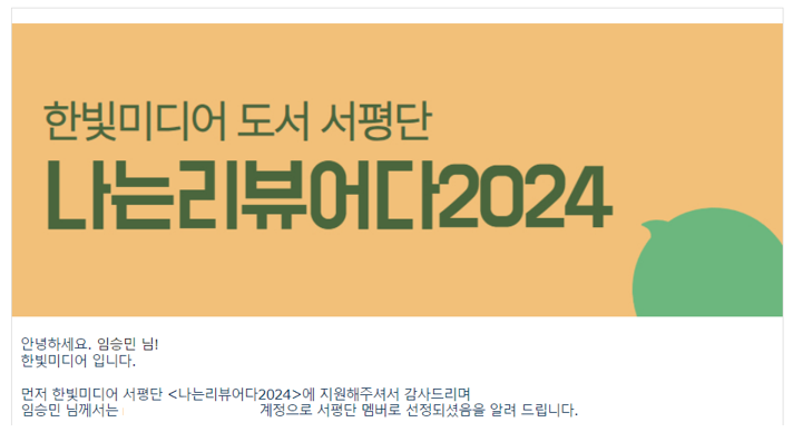한빛미디어 서평단 <나는 리뷰어다 2024>에 선정되었습니다.