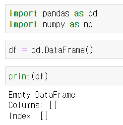 numpy에서 nan 으로 결측치, 없는 값으로 표현.