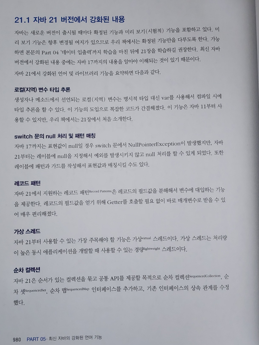 - Part 05(21장) : 최신 자바에서 강화된 언어 및 라이브러리