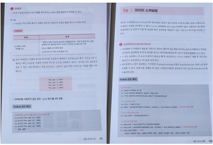 책의 구성을 살펴보면 유형 2의 머신러닝 코드 문제가 '분홍책'에서는 후반부에 배치되어있는데, 유형 1과 3의 짧은 코드 사용을 우선 학습하고, 이후 보다 많은 개념(다양한 전처리 방법, 머신러닝 등)과 코드가 사용되는 유형 2를 후반부에 배치함으로써 수험자가 학습 시간을 효율적으로 관리 할 수 있도록 한 부분 역시 책의 장점으로 보인다.