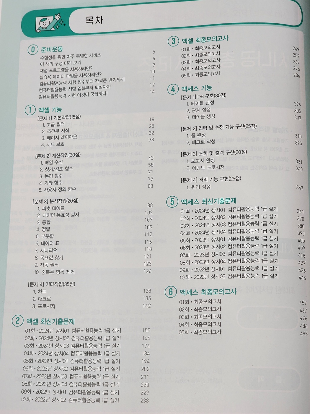 책은 엑셀과 엑세스에서 출제되는 모든 유형을 다루고 있는데, 실제 문제와 동일한 순서로 배열 되어있어