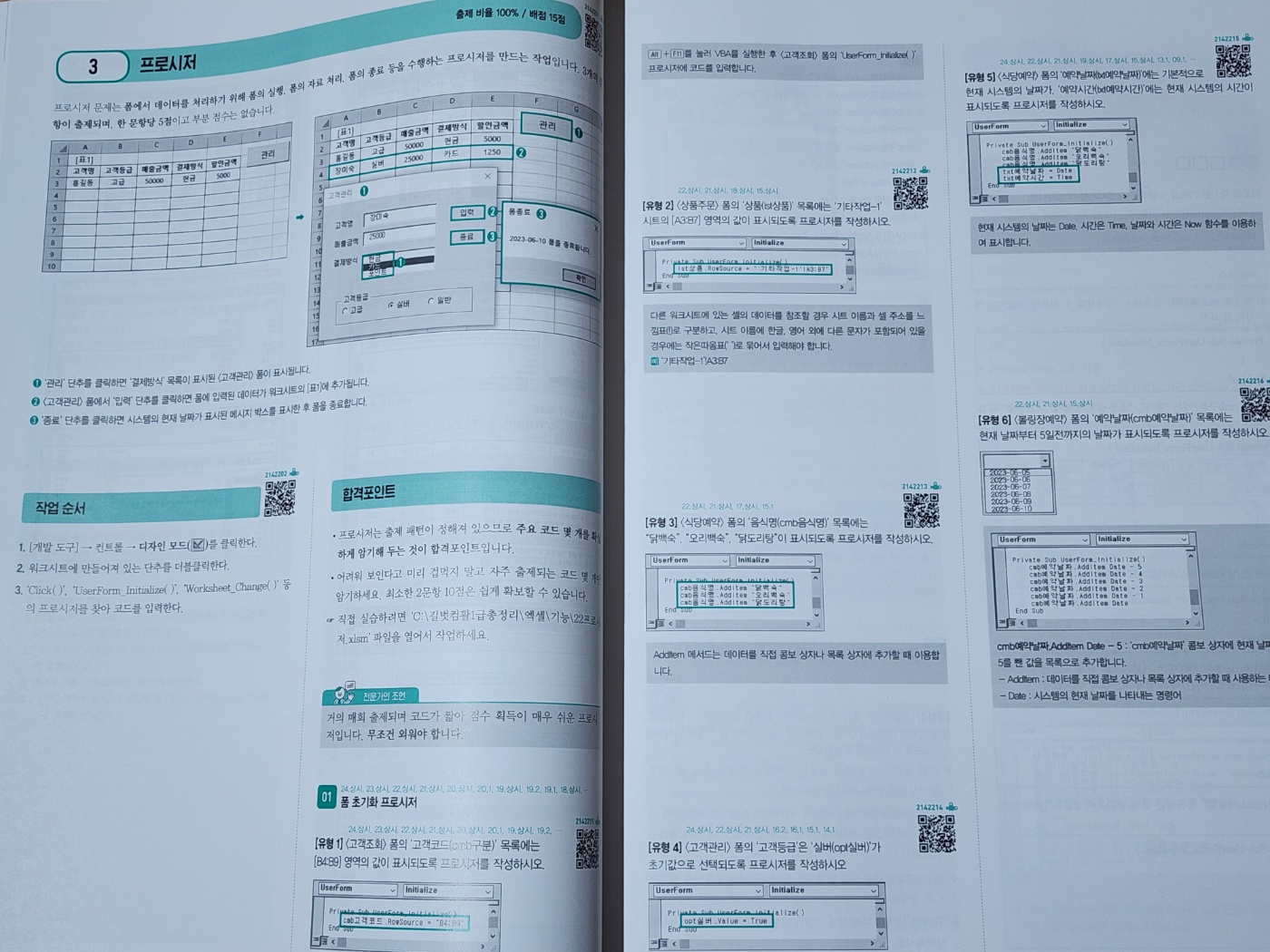 엑셀의 '함수' 파트와 더불어 고 난이도의 양대 산맥인 '프로시저' 파트 역시 합격 포인트를 통한 문제 핵심 풀이를 제공해, 프로시저의 동작 원리를 이해하여 이후의 문제 풀이를 독자들이 암기가 아닌 이해 풀이로 진행 할 수 있도록 안내하는 점 역시 시나공 실기 책의 강점이다.