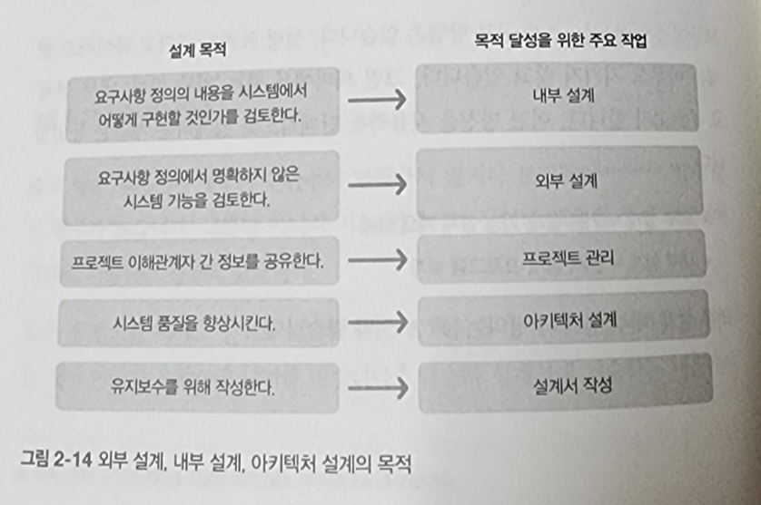 '무엇을 설계하는가?'로 시작하는 해당 파트는 '2.4 설계의 목적' 에서 5가지의 설계 목적을 알려준다. 단순히 '설계의 목적이 이것 때문이다.'로 정의하는 것이 아닌, 필요한 이유를 함께 서술하며, 설계를 외부 설계와 내부 설계로 분리하여 설계에 대한 개념을 명확하게 인지 할 수 있도록 하는 점이 '설계'에 대해 이해하는데 큰 도움이 되었다.
