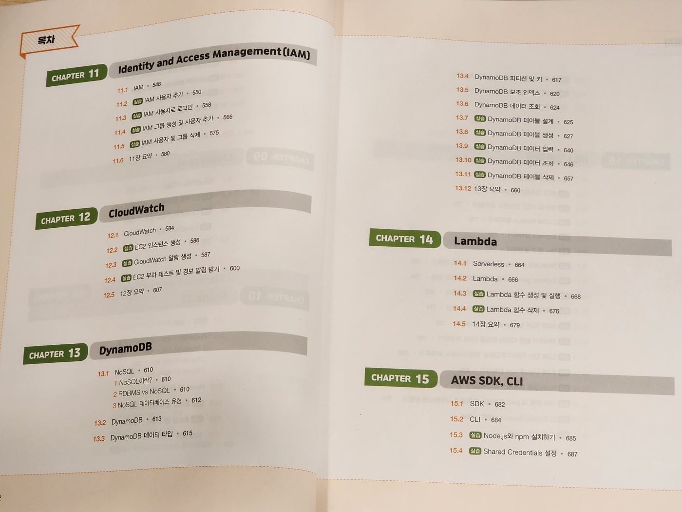 chapter 3부터 본격적으로 aws 서비스를 시작하는데, 흔히 aws 서비스 3대장으로 불리는 EC2(Elastic Compute Cloud)를 3장에서, 이후 7장에서 RDS(Relational Database Service)를, 8장에서 S3(Simple Storage Service) 모두를 책의 전반부에서 설명한다. 또한 11장 IAM(Identity and Access Management) 와 13장 DynamoDB, 14장 Lambda 는 책의 후반부에 설명하며, 층층히 aws 의 개념과 원리를 쌓아가도록 독자를 안내한다.