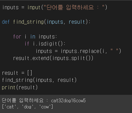 ㅁ 문자열에서 숫자 제거 후 반환하기