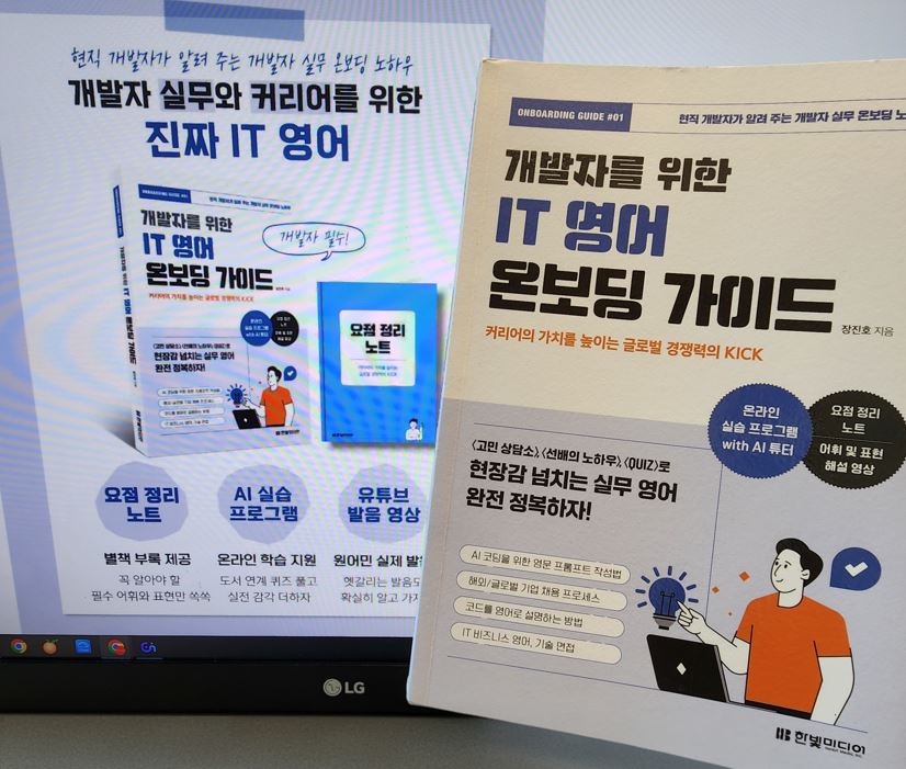 개발자의 커리어 가치를 높이는, 글로벌 경쟁력을 향상 시킬 수 있는 'IT 영어' 학습 방법이 담긴 한빛미디어의 신간 '개발자를 위한 IT 영어 온보딩 가이드'를 YES24 서평단 - 리뷰어클럽을 통해 만나게 되었다.