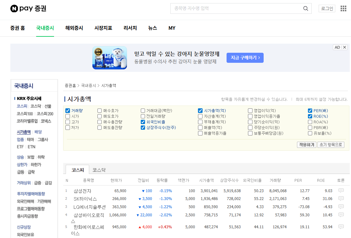 네이버 증권 - 시가총액