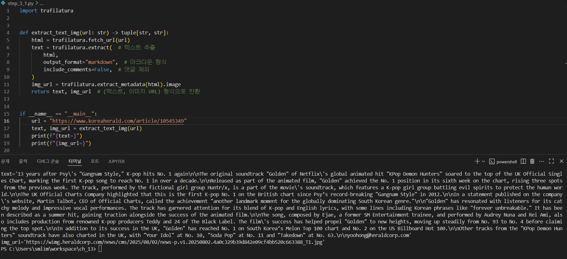 ▶ Ch.13(13-3) 웹 크롤링으로 HTML에서 기사 텍스트 추출하기