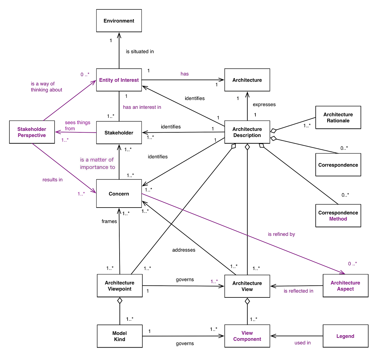 A Conceptual Model of Architecture Description ISO/IEC/IEEE 42010 is based upon a conceptual model – or “meta model” – of the terms and concepts pertaining to Architecture Description. The conceptual model is presented here using UML class diagrams