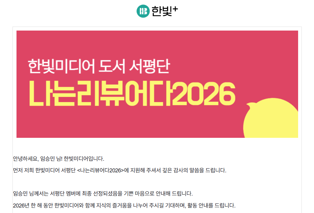 24년과 25년에 이은 26년에도 좋은 책을 리뷰할 수 있게 되어 영광입니다.(감사합니다!)