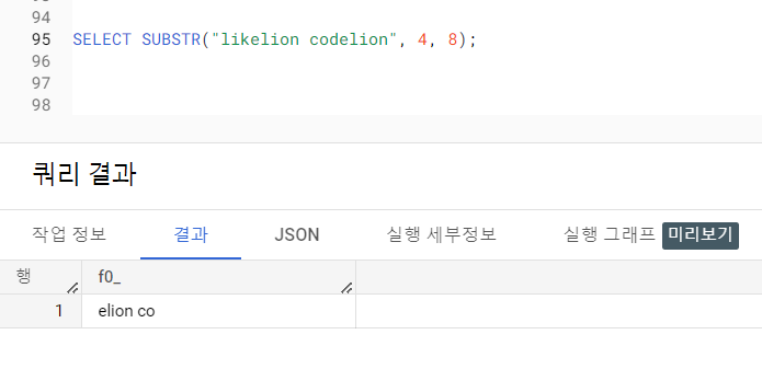 ▶ SUBSTR(text, 시작 위치, 끝 위치)