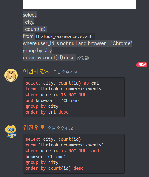 ㅁ SQL 문제 중 오늘 얻은 지식.