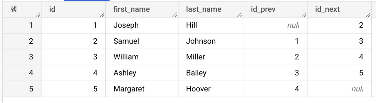 단, LAST_VALUE는 지금까지 읽은 행의 집합을 의미하기 때문에 항상 자기 자신입니다.