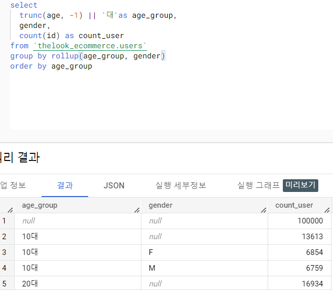 > 집계된 데이터에서 그룹별 소계, 총계를 구하기 위해 사용