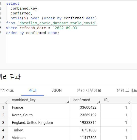 - 번호 지정 함수 : RANK, DENSE_RANK, PERCENT_RANK, CUME_DIST, NTILE