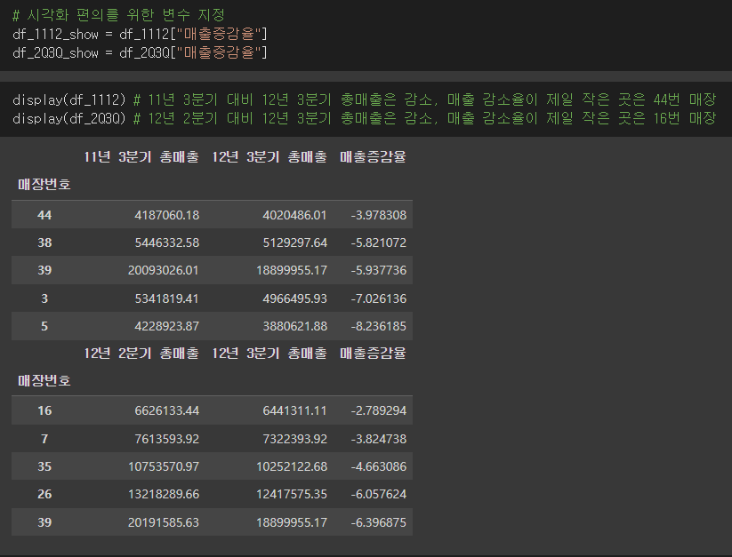 매장별 매출액을 도출 하였다.