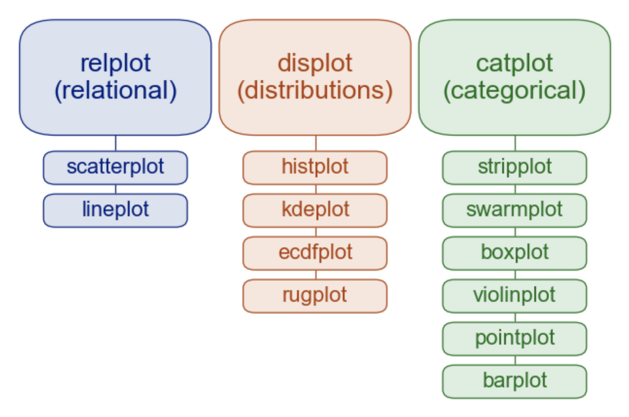 A : FacetGrid => 하나의 범주형 변수를 쪼개고 나누어 시각화. (relplot, displot, caplot) PairGrid => 여러 변수를 비교해서 서브플롯( ex) pairplot)