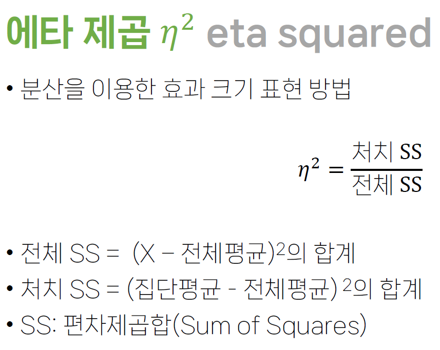 얼마나 다른데 ? => 효과 크기(에타제곱, Cohen's d)