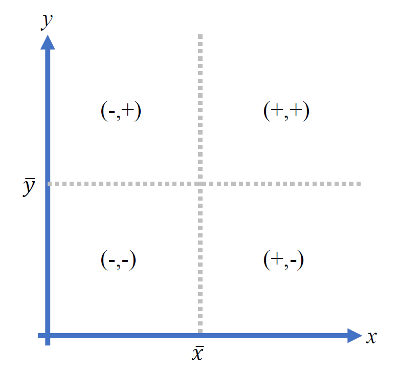 - + : 두 변수가 같은 방향으로 변화 하나가 증가하면 다른 하나도 증가