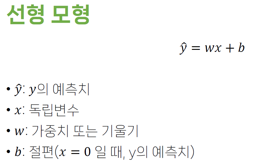 - 독립변수 independent variable : 예측의 바탕이 되는 정보 , 인과관계에서 원인 ,입력값