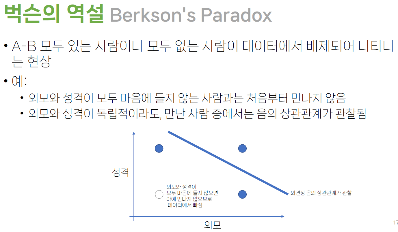- 각 집단별 상관관계와 전체 총합의 상관관계는 다를 수 있음.