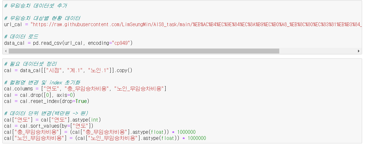 분석에 사용할 무임승차 데이터셋을 추가. 전처리 하여