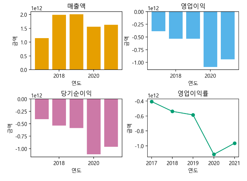 다음으로는 영업이익과 당기순이익, 영업이익률을 분석한다.