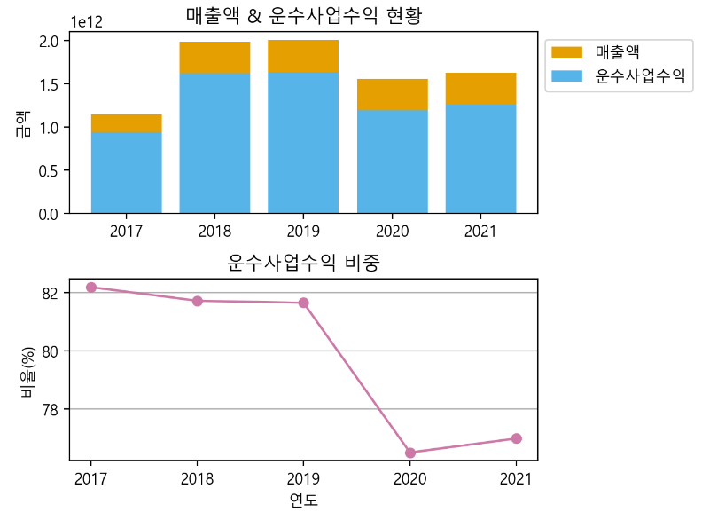 매출액에서 운수사업수익이 차지하는 %를 분석하고