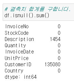 * CustomerID의 결측치 => 비회원 구매일 가능성.